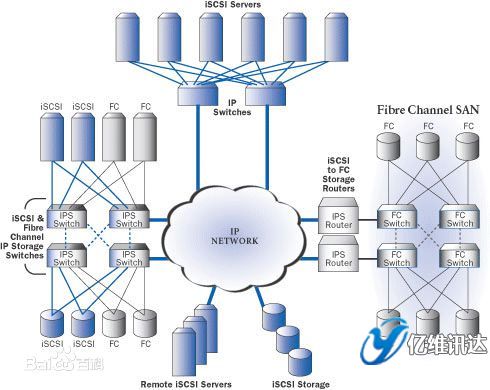 從根本上說,iSCSI協(xié)議是一種利用IP網(wǎng)絡(luò)來(lái)傳輸潛伏時(shí)間短的SCSI數(shù)據(jù)塊的方法,ISCSI使用以太網(wǎng)協(xié)議傳送SCSI命令、響應(yīng)和數(shù)據(jù)。ISCSI可以用我們已經(jīng)熟悉和每天都在使用的以太網(wǎng)來(lái)構(gòu)建IP存儲(chǔ)局域網(wǎng)。通過這種方法,ISCSI克服了直接連接存儲(chǔ)的局限性,使我們可以跨不同服務(wù)器共享存儲(chǔ)資源,并可以在不停機(jī)狀態(tài)下擴(kuò)充存儲(chǔ)容量。