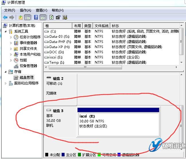 然后,在客戶端(以windows 7為例),看一下,如何連接ISCSI,請(qǐng)?jiān)L問《windows server 2008R2部署ISCSI》。